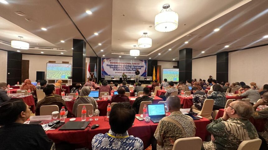 Konvensi Nasional ini merupakan pertemuan rutin tahunan sebagai wadah untuk saling berbagi gagasan dan informasi hingga pengambilan kebijakan terkait keberlangsungan Ilmu Hubungan Internasional di Indonesia. Tema yang diangkat dalam Vennas XV AIHII adalah “Kontestasi Pendekatan Keamanan Tradisional Dan Non-Tradisional Di Kawasan Indo-Pasifik”. Tercatat 74 guru besar dan dosen dari 45 universitas di Indonesia kegiatan berlangsung dari 8-11 Oktober 2024. (*)