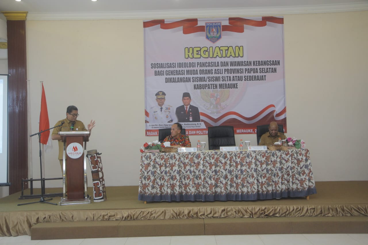 Hal ini disampaikannya saat membuka sosialisasi ideologi dan wawasan kebangsaan bagi generasi muda orang asli Papua di kalangan siswa-siswi SLTA dan sederajat se-Kabupaten Merauke di Hotel Megaria Merauke, pada Selasa (23/10/2024).
