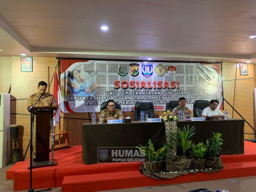 “Saya mewakili Pemerintah Provinsi Papua Selatan mengucapkan terima kasih atas kehadiran Bapak/Ibu dalam acara sosialisasi pemberantasan pungutan liar dan penyuluhan anti-korupsi. Kegiatan ini sangat penting bagi kita semua, terutama bagi ASN di Provinsi Papua Selatan,” ujar Guritno.