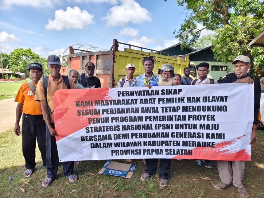 “Kami, sebanyak 22 marga pemilik hak ulayat, siap mendukung penuh Proyek Strategis Nasional di Merauke,” ujar Maksi Gaminjai, perwakilan marga Gaminjai, Senin (24/2/2025).