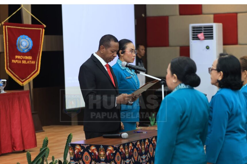 Pesan tersebut disampaikan oleh Gubernur Apolo dalam sambutannya pada acara Pelantikan TP-PKK Provinsi Papua Selatan, Ketua-ketua TP-PKK, Tim Pembina Posyandu, serta Dewan Kerajinan Nasional Daerah (Dekranasda) Kabupaten Merauke dan Mappi untuk masa bhakti 2025-2030, yang berlangsung di Hotel Halogen Merauke pada Sabtu (8/3/2025).