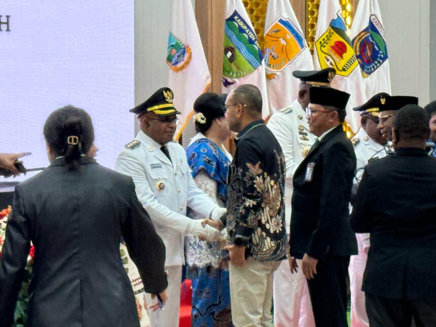 Sementara itu, Gubernur Papua Tengah Meki Nawipa memberi pesan khusus kepada Bupati Mimika Johaness Rettob dan Wakil Bupati Emanuel Kemong untuk merangkul semua kalangan. “Bangun komunikasi yang baik, rangkul semua lawan politik, jaga kita punya wilayah, kita punya gunung, melalui Otonomi Khusus negara telah memberi privilege untuk kita membangun tanah kita dengan baik. Mari kita buat sejarah di periode ini, wilayah Papua Tengah harus bangkit dan ‘terbang’,” kata Meki Nawipa dalam sambutannya.