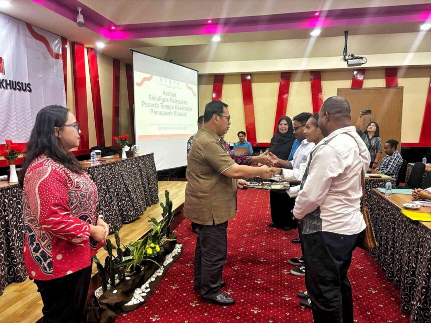 TIFFANEWS.CO.ID – Pemerintah Provinsi Papua Selatan resmi melepas 74 tenaga kesehatan dalam Program Penugasan Khusus Ha Anim Sehat pada Sabtu (12/4/2025) di Hotel Halogen, Merauke. Program ini merupakan bagian dari upaya pemenuhan tenaga kesehatan di wilayah-wilayah terpencil dan sangat terpencil di Papua Selatan.