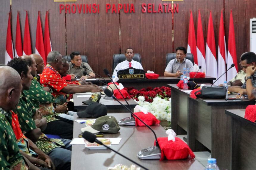 TIFFANEWS.CO.ID – Sejalan dengan asta cita pemerintah pusat memberdayakan ekonomi masyarakat melalui pemberdayaan Koperasi desa Merah Putih, pada hari ini, Jumat (2/5/2025), Gubernur Papua Selatan, Apolo Safanpo, menerima Pengurus Koperasi Inggyash Ghuzi dan 9 ketua marga yang akan membangun unit usaha kebun plasma kelapa sawit seluas 4.600 hektar yang terletak di Kampung Selil, Distrik Ulilin.