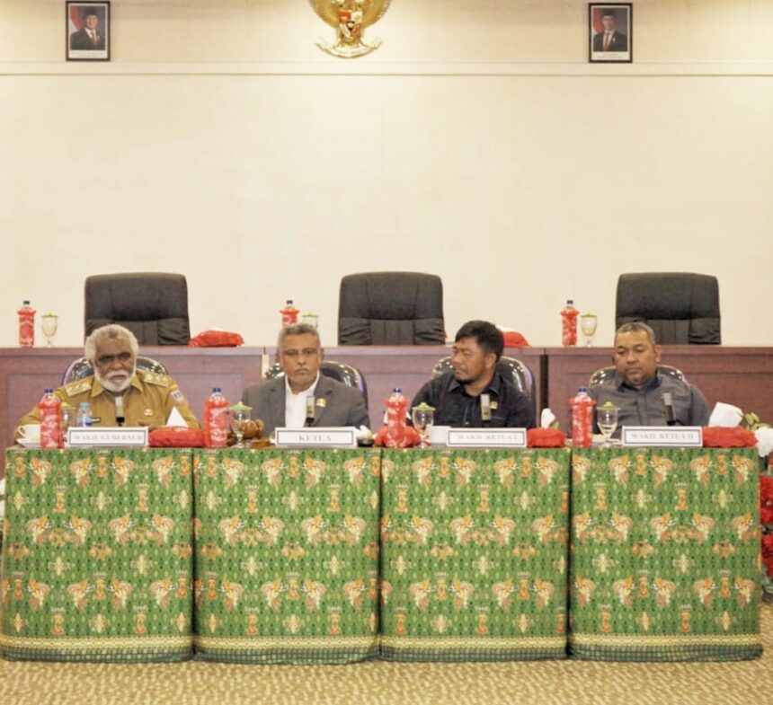 Wakil Gubernur Papua Selatan, Paskalis Imadawa bersama Ketua DPR Papua Selatan, Heribertus Silubun didampingi para Wakil Ketua DPR Papua Selatan. (Foto: tiffanews.co.id/HPPS)