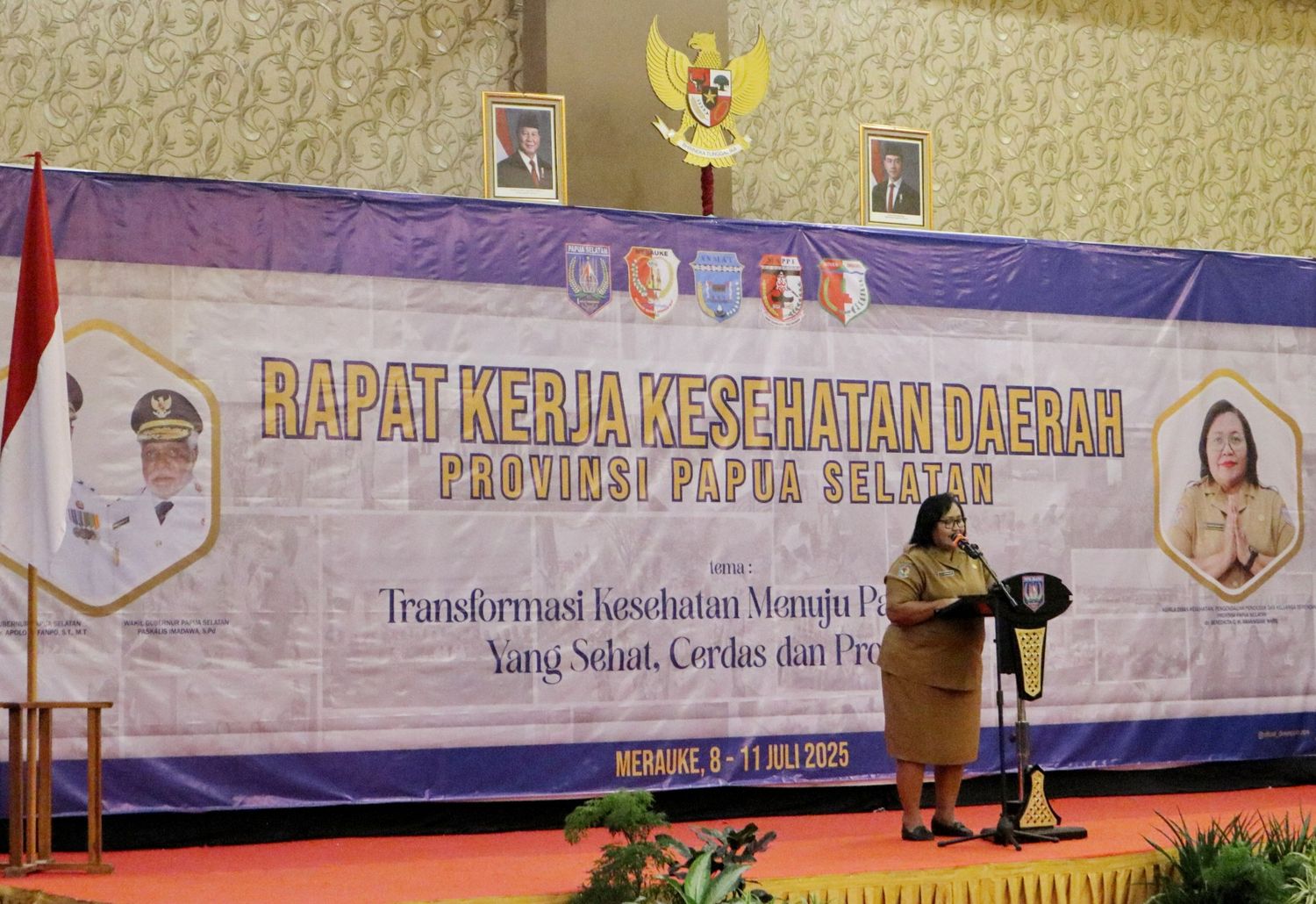 Kepala Dinas Kesehatan, Pengendalian Penduduk, dan Keluarga Berencana Provinsi Papua Selatan, dr. Herlina Rahangiar, MARS, dalam sambutannya menegaskan bahwa transformasi sektor kesehatan merupakan pondasi utama dalam mewujudkan masyarakat Papua Selatan yang sehat secara fisik, cerdas secara intelektual, dan produktif secara sosial dan ekonomi.