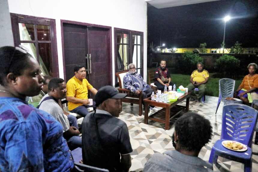Saat senja mulai turun, tepat pukul 18.00 WIT, Wagub Paskalis duduk santai bersama masyarakat di bawah terang lampu kampung, mendengarkan suara-suara hati warga. Suasana penuh keakraban, tanpa sekat antara pemimpin dan rakyatnya.