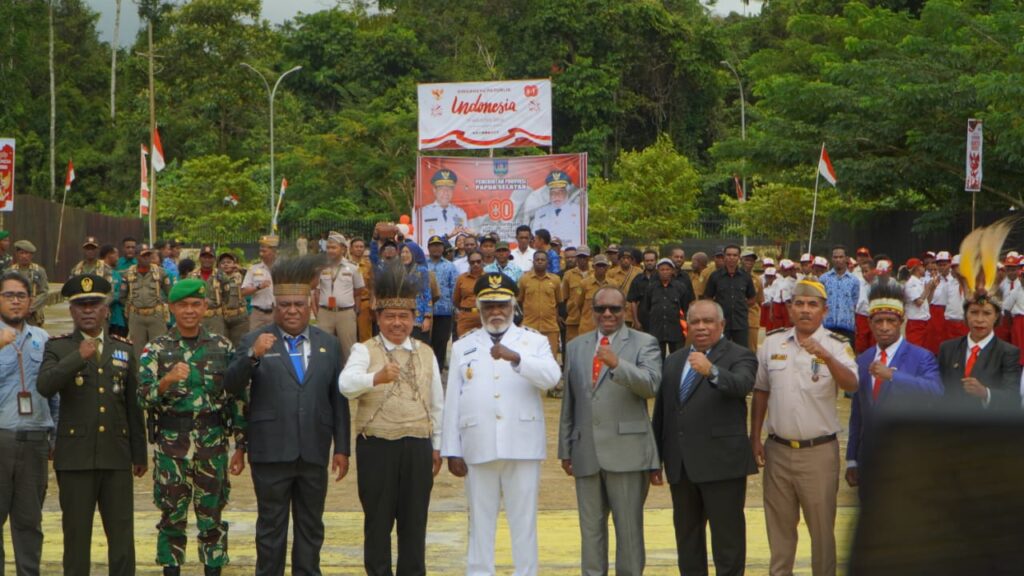 Upacara yang berlangsung di perbatasan Indonesia-Papua Nugini ini dihadiri Wakil Gubernur Papua Selatan Paskalis Imadawa, sejumlah pejabat Badan Nasional Pengelola Perbatasan (BNPP), serta pimpinan instansi dari Pemerintah Provinsi Papua Selatan dan Pemerintah Kabupaten Boven Digoel.