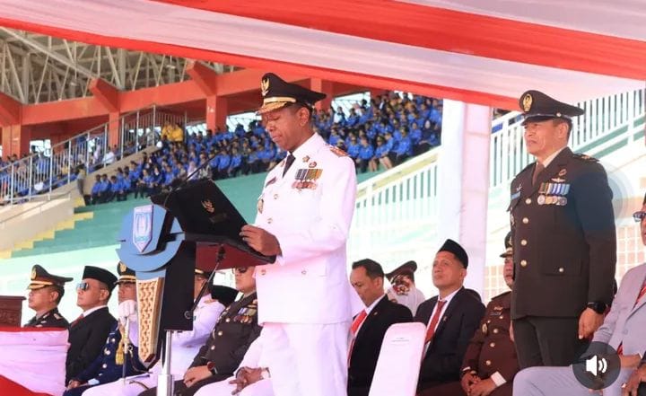TIFFANEWS.CO.ID,- Gubernur Papua Selatan, Apolo Safanpo, memimpin upacara pengibaran bendera merah putih pada puncak peringatan HUT ke-80 Kemerdekaan Republik Indonesia yang berlangsung di Stadion Katalpal, Merauke, Minggu (17/8/2025).