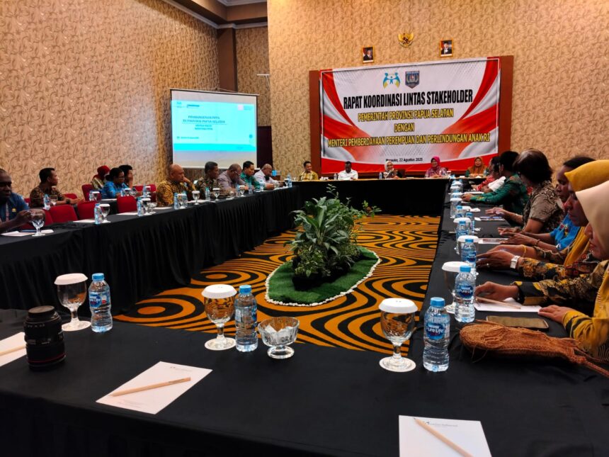 TIFFANEWS.CO.ID – Pemerintah Provinsi (Pemprov) Papua Selatan menggelar rapat koordinasi bersama Menteri Pemberdayaan Perempuan dan Perlindungan Anak (PPA) RI, Hj. Arifah Choiri Fauzi, membahas isu-isu strategis terkait pemberdayaan perempuan dan perlindungan anak. Pertemuan lintas stakeholder ini berlangsung di Swiss-Belhotel Merauke, Jumat (22/8/2025) malam.
