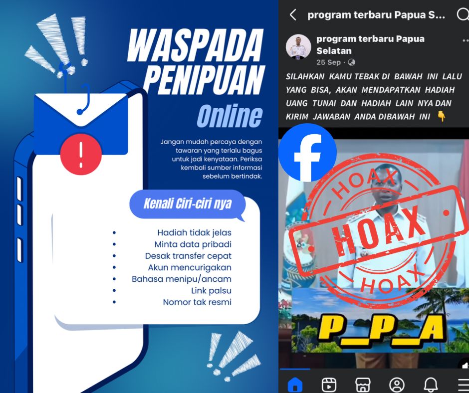 Imbauan ini disampaikan menyusul maraknya unggahan di media sosial yang mengatasnamakan Pemerintah Provinsi Papua Selatan untuk menarik partisipasi masyarakat dalam kegiatan berhadiah.