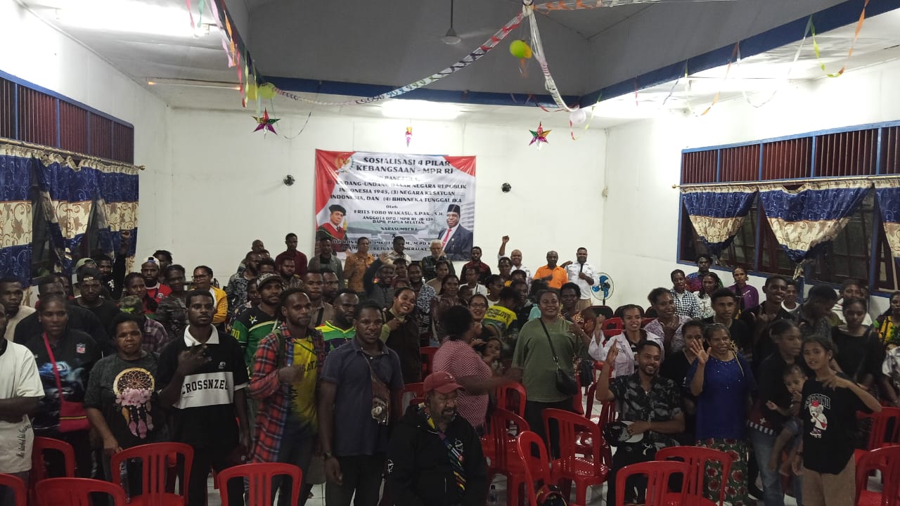 TIFFANEWS.CO.ID – Anggota MPR RI, Frits Tobo Wakasu, melaksanakan Sosialisasi Empat Pilar Kebangsaan ke-III kepada Himpunan Pelajar Mahasiswa Papua Pegunungan Tengah (HPMPPT) Papua Selatan. Kegiatan ini berlangsung di Gereja GIDI Pison Merauke, Jumat (12/12/2025) lalu, pukul 3 hingga 4 sore dan diikuti oleh pelajar serta mahasiswa Papua Pegunungan Tengah yang sedang menempuh pendidikan di Merauke.