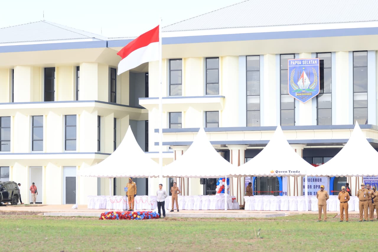 “Oleh karena itu, mari kita manfaatkan fasilitas Kantor Gubernur, Kantor DPRP Papua Selatan, yang nantinya juga disusul Kantor Majelis Rakyat Papua Selatan serta kantor-kantor OPD lainnya,” ujarnya.