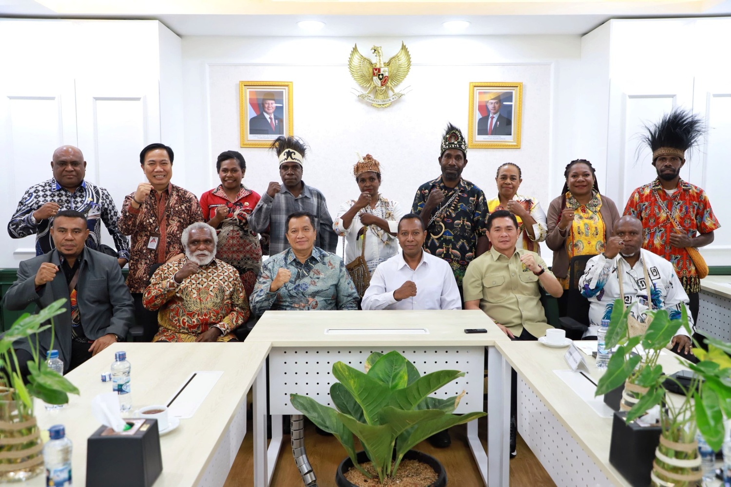 Pertemuan antara jajaran Pemerintah Provinsi Papua Selatan bersama DPR Papua Selatan (DPRPS) dan Majelis Rakyat Papua Selatan (MRPS) dengan Wakil Menteri Pendayagunaan Aparatur Negara dan Reformasi Birokrasi (Wamen PAN-RB), Purwadi Arianto, di Jakarta.