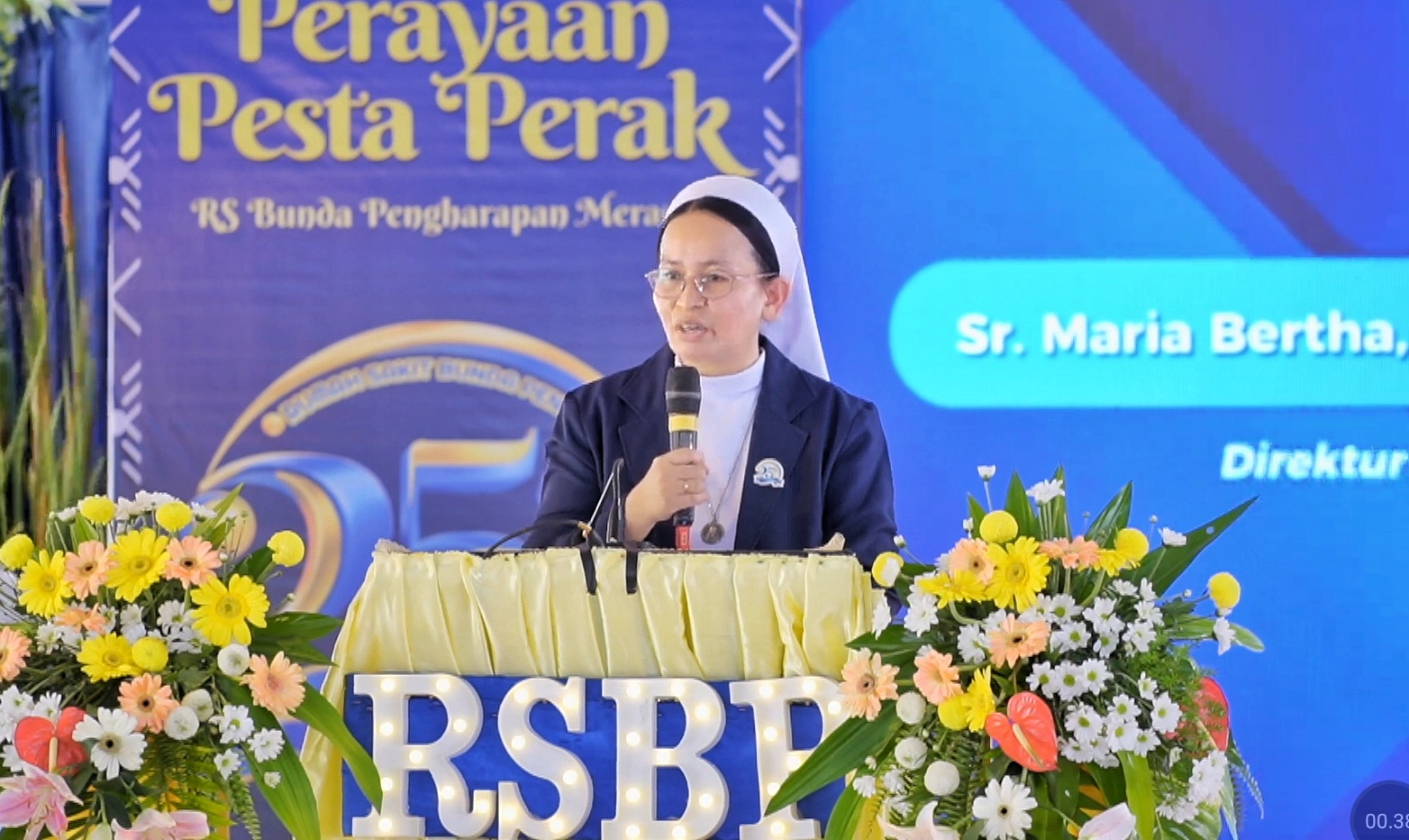Direktur Rumah Sakit Bunda Pengharapan Merauke, Sr. Maria Bertha, PRR / dr. Betharia Suci, KRCHN., MARS, dalam sambutannya mengenang awal berdirinya rumah sakit yang lahir dari keterbatasan, namun dipenuhi iman dan semangat pelayanan.