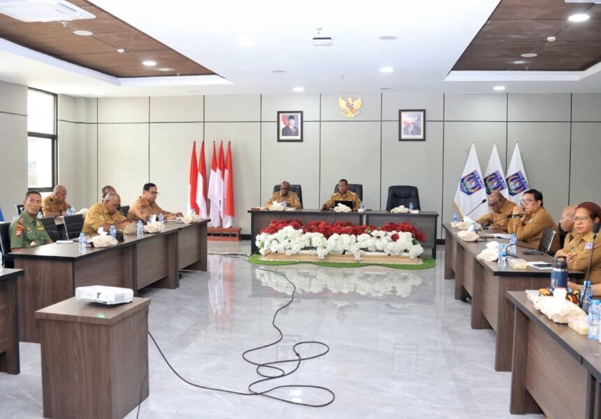 Rakor yang berlangsung di ruang rapat lantai tiga Kantor Gubernur Papua Selatan, Senin (23/2/2026), melibatkan seluruh Kepala Organisasi Perangkat Daerah (OPD), para staf ahli gubernur, serta kepala biro di lingkungan Pemerintah Provinsi Papua Selatan.