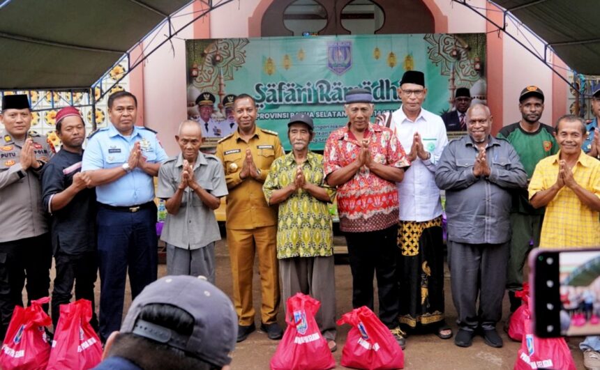 TIFFANEWS.CO.ID – Gubernur Papua Selatan (Papsel), Apolo Safanpo, kembali menunjukkan komitmennya di bulan suci. Dalam agenda Safari Ramadan, ia membagikan 500 paket sembako sekaligus menyerahkan bantuan uang tunai Rp50 juta kepada Mesjid Miftahul Huda, Kampung Suka Maju, Distrik Malind, Kabupaten Merauke, Selasa (24/2/2026).