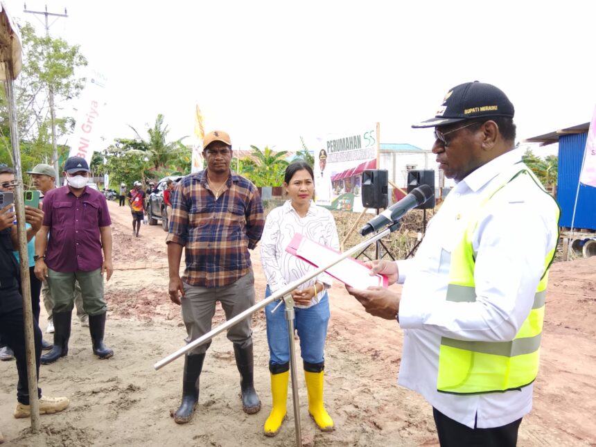 TIFFANEWS.CO.ID — Bupati Merauke, Yoseph B. Gebze, secara resmi melakukan peletakan batu pertama pembangunan rumah subsidi pemerintah tanpa DP pada Selasa (17/3/2025) di Jalan Poros Tujuh Wali-Wali, Merauke. Kegiatan ini menjadi langkah awal dalam mendorong penyediaan hunian layak bagi masyarakat, khususnya bagi kelompok berpenghasilan rendah di Kabupaten Merauke.