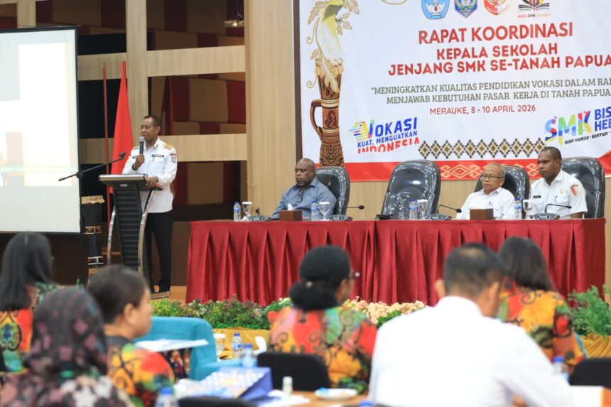 TIFFANEWS.CO.ID – Gubernur Papua Selatan, Apolo Safanpo, mendorong peningkatan kualitas pendidikan saat membuka Rapat Koordinasi (Rakor) Kepala SMK se-Tanah Papua di Hotel Halogen Merauke, Rabu (8/4/2026).