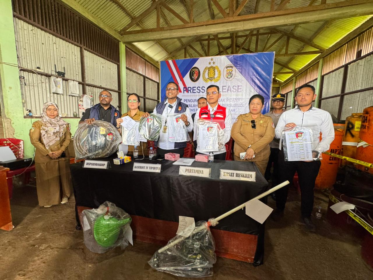 Dari hasil penggeledahan, polisi mengamankan sejumlah barang bukti, di antaranya 1.700 liter solar, mesin dispenser, pompa, selang, serta dokumen transaksi ilegal dan bundel surat rekomendasi.