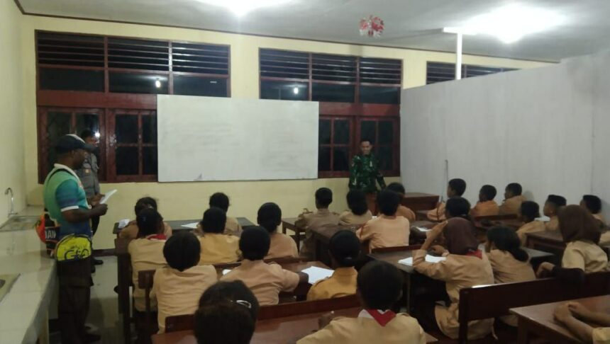 TIFFANEWS.CO. ID,- SMP Negeri 02 Takar – Distrik Pantai Timur Barat, Sarmi menggelar wawasan kebangsaan (Wasbang) Selasa (19/09/2022). Salah satu pemateri Babinsa Koramil 1712-02/Pantai Timur Sertu Sikurullah