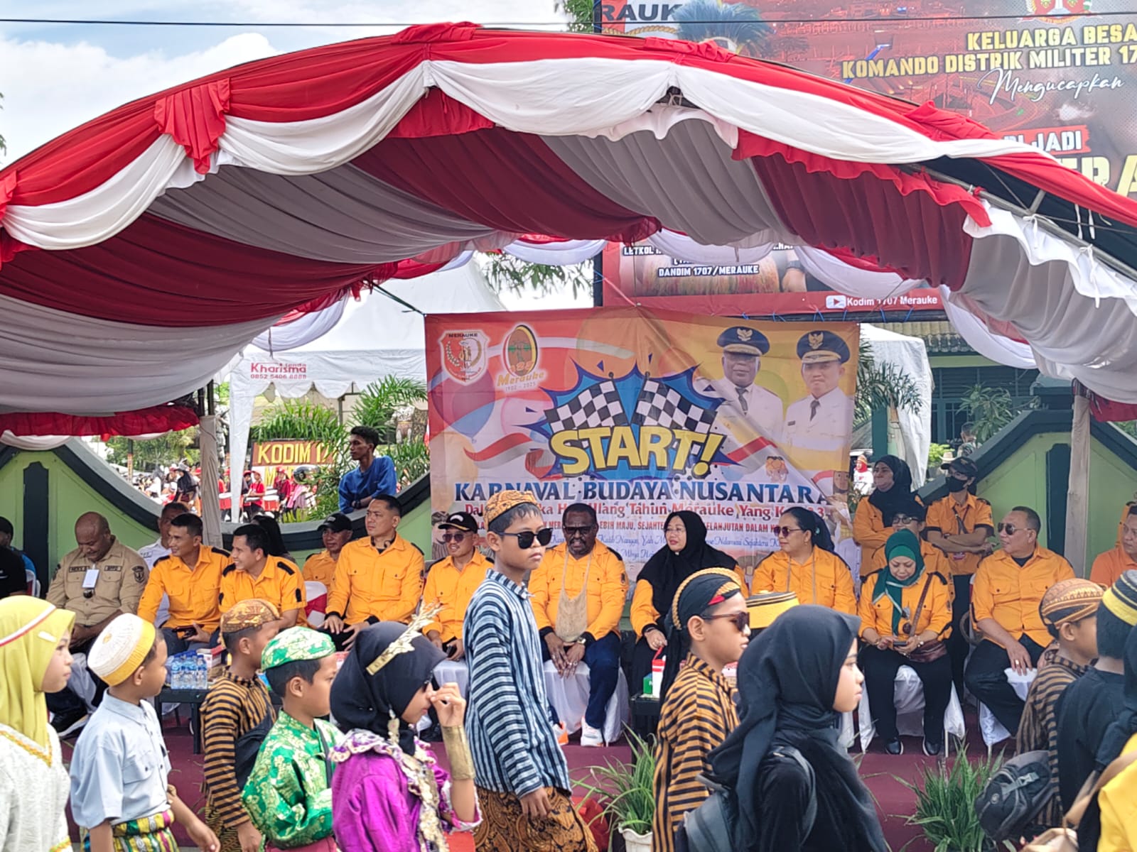 Wakil Bupati Merauke, H. Riduwan, secara resmi melepas peserta karnaval dengan ajakan untuk menjadikan perayaan ini sebagai sarana mempererat kebersamaan masyarakat.