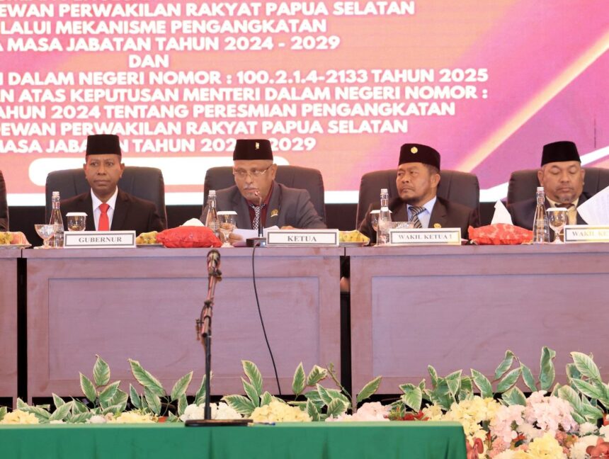 TIFFANEWS.CO.ID — Sejarah kembali tercipta di Provinsi Papua Selatan. Sembilan anggota Dewan Perwakilan Rakyat Provinsi Papua Selatan (DPRPPS) dari jalur pengangkatan afirmasi resmi dilantik dalam rapat paripurna di Swiss-Belhotel Merauke, Rabu (4/6). Momen ini menjadi titik balik perjuangan politik Orang Asli Papua (OAP) untuk mendapatkan ruang representasi yang lebih adil di tingkat legislatif.