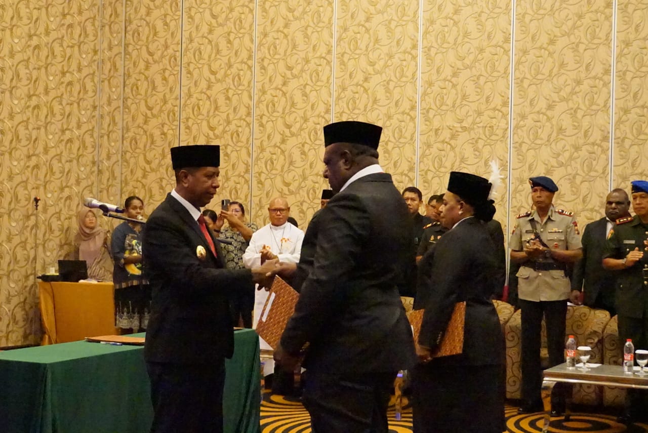 Dalam sambutannya, Gubernur Apolo menyampaikan selamat kepada kedua pejabat yang baru dilantik dan berharap mereka mampu menjalankan amanah serta tanggung jawab dari seluruh anggota MRPS dan masyarakat.