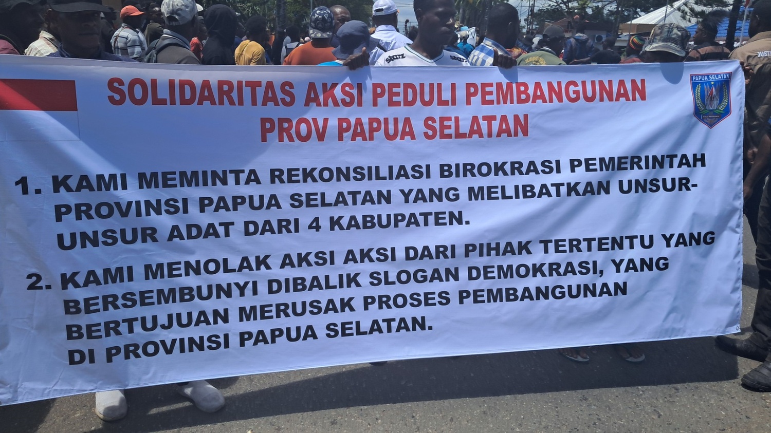Pertama, massa meminta dilakukan rekonsiliasi birokrasi Pemerintah Provinsi Papua Selatan dengan melibatkan unsur-unsur adat dari empat kabupaten. Kedua, massa menolak segala bentuk aksi pihak-pihak tertentu yang bersembunyi di balik slogan demokrasi namun justru bertujuan merusak jalannya pembangunan di Papua Selatan.