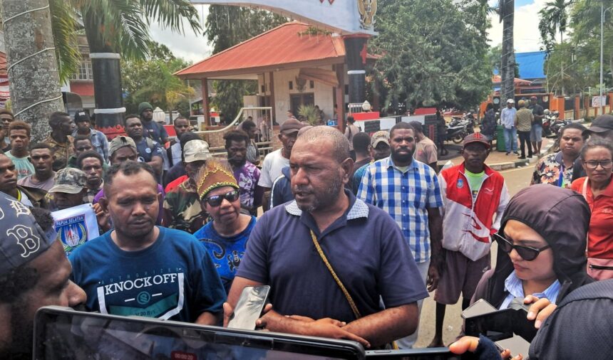 TIFFANEWS.CO.ID – Aksi damai digelar di depan Gedung Negara, Kantor Gubernur Papua Selatan oleh massa yang menamakan diri Solidaritas Aksi Peduli Pembangunan Provinsi Papua Selatan, Senin (15/9/2025). Dalam aksi tersebut, massa menyampaikan dua tuntutan utama melalui petisi yang dibentangkan.