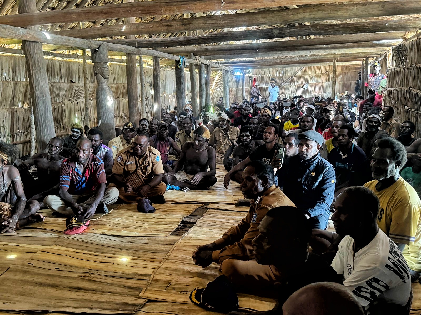 TIFFANEWS.CO.ID – Gubernur Papua Selatan, Apolo Safanpo, melakukan diskusi dan menyerap aspirasi masyarakat di Rumah Adat Jew, Kampung Yaisiu, Distrik Atsj, Kabupaten Asmat, Selasa (3/3/2026).