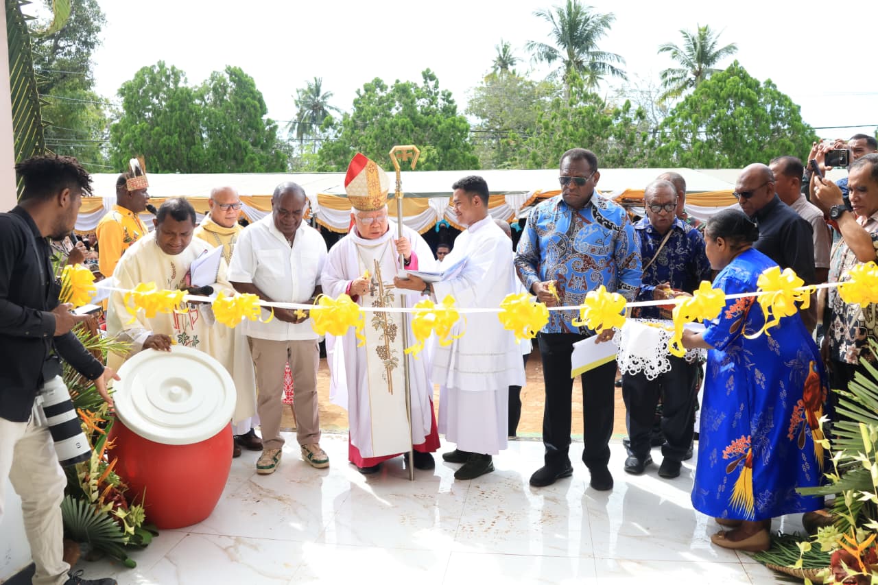 Peresmian Gereja Katolik Santa Maria Fatima ditandai dengan penandatanganan prasasti dan pengguntingan pita oleh Bupati Merauke, Yoseph B. Gebze, didampingi Sekda Papua Selatan, Ferdinandus Kainakaimu.