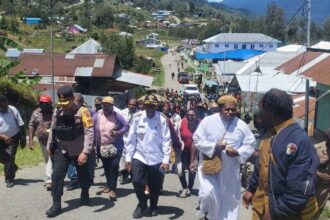 Hilangkan Rasa Takut, Pj Bupati Intan Jaya dan Rombongan Jalan Kaki Sapa Masyarakat di Sekitar Kota Sugapa