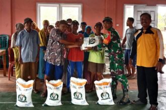 Babinsa Koramil 05/Merauke Bantu Kepala Kampung Sukamaju Salurkan Beras Raskin