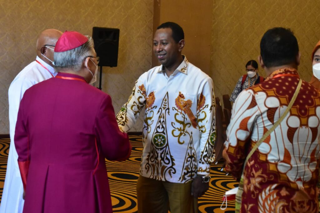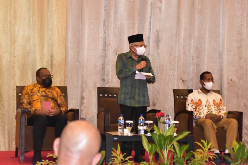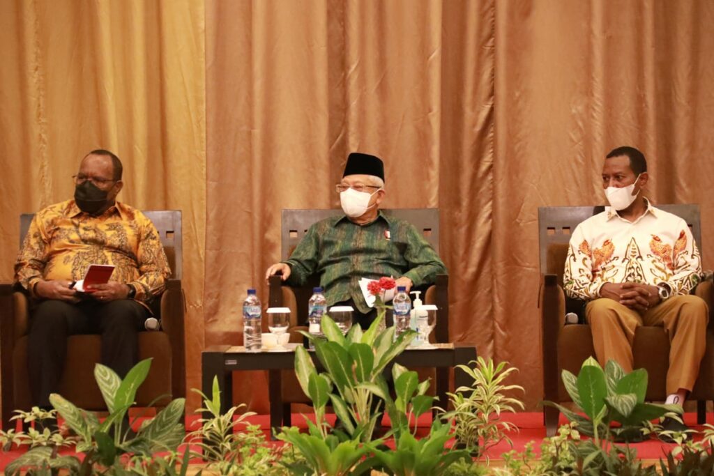 TIFFANEWS.CO.ID,- Wapres K.H. Ma’ruf Amin didampingi Wakil Menteri Dalam Negeri (Wamendagri) John Wempi Wetipo melakukan pertemuan dengan Pj. Gubernur Papua Selatan Apolo Safanpo, Bupati se-Papua Selatan, Forim Koordinasi Pimpinan Daerah Provinsi Papua Selatan, tokoh agama, dan tokoh masyarakat Merauke di Ballroom Swiss-Belhotel Merauke, Rabu (30/11).(*)