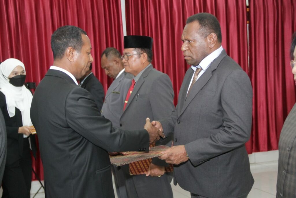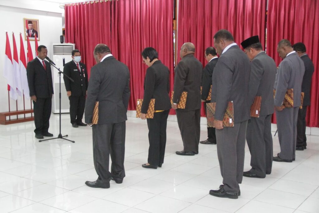 TIFFANEWS.CO.ID,- Pj. Gubernur Papua Selatan Apolo Safanpo mengangkat 10 pimpinan pratama (Esolon II)di lingkup Pemerintahan Provinsi (Pemprov) Papua Selatan. Pelantikan dan pengambilan sumpah kesepuluh pimpinan pratama ini dilaksanakan di Kantor Gubernur Papua Selatan, Kamis (1/12).