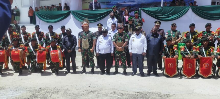 Tiffanews.co.id, Paniai – Panglima Kodam XVII Cenderawasih Mayjen TNI Muhammad Saleh Mustafa didampingi Ketua Persit KCK Daerah XVII/Cenderawasih Ny. Ziska Muhammad Saleh Mustafa memimpin upacara peringatan Hari Ulang Tahun (HUT) Ke-77 Tentara Nasional Indonesia (TNI), bertempat di lapangan Kantor Bupati Paniai Jln. Poros Madi, Distrik Paniai Timur Kabupaten Paniai, Papua. Rabu (5/10/2022).
