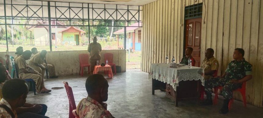 TIFFANEWS.CO.ID,- Dukung kemajuan Kampung Binaan, π–‘π–Ίπ–»π—‚π—‡π—Œπ–Ί Koramil 1711-03/TM Pos Koramil Kouh Serma Abriyanto Massora dan rekannya menghadiri rapat yang digelar aparat Kampung Kouh dengan topik pembahasan pemekaran kampung baru Movinanti dan persiapan kampung sehat di Balai Kampung Kouh, Distrik Kouh, Boven Digoel, Kamis (01/09/2022).