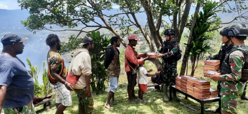 Tiffanews.co.id, Jayawijaya – Masih dalam rangkaian memperingati Hari jadi TNI ke-77 tahun, personel Pos Napua Satgas Yonif Raider 321/GT/13/1 Kostrad menggelar acara sederhana bersama masyarakat dan membagikan paket Sembako serta nasi kotak kepada warga kurang mampu, di Kampung Napua, Distrik Napua, Kabupaten Jayawijaya, Papua, Senin (10/10/2022).