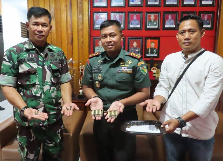 Adapun penyerahan amunisi tersebut, berupa 20 butir amunisi (kaliber 5,56 mm, 1 butir amunisi (kaliber 9 mm), dan 5 butir amunisi (kaliber 38 mm).