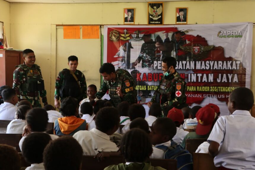 Tiffanews.co.id, Intan Jaya – Demi memanfaatkan waktu yang sangat singkat, yang mana rencananya hanya 9 bulan di Intan Jaya, para Ksatria Tengkorak tanpa kenal lelah, terus memberikan pelayanan kepada masyarakat. Bukan hanya ke kampung-kampung, sekolah pun didatangi, demi menemui bagian-bagian dari elemen masyarakat, yakni para Guru anak-anak sekolah di SD Inpres Yokatapa, Distrik Sugapa, Kab. Intan Jaya, Rabu (19/10/2022).