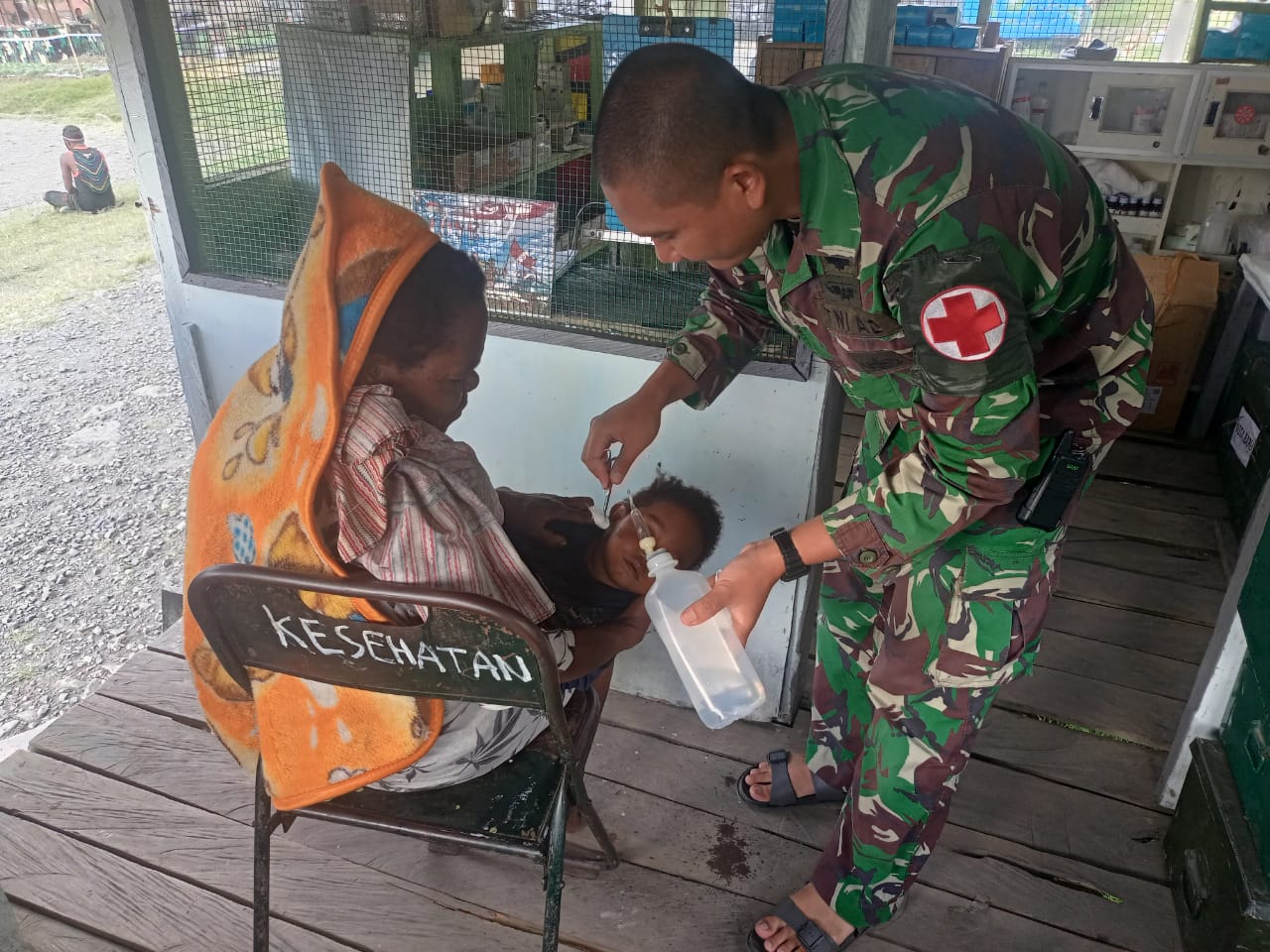 Menurut dokter Satgas Lettu Ckm dr. Oky fredy AM, “Pelayanan kesehatan di Posramil Kota Baru dengan jumlah warga yang datang untuk berobat setiap harinya kurang lebih 10 s.d 15 orang datang secara bergantian dan mayoritas menderita radang tenggorokan, batuk, nyeri tulang, gatal-gatal, dan seorang mama-mama menderita rematik. Semua pasien yang datang kami beri obat sekaligus para warga diberi penyuluhan akan pentingnya hidup sehat”, tutur Lettu Ckm dr. Oky fredy AM.