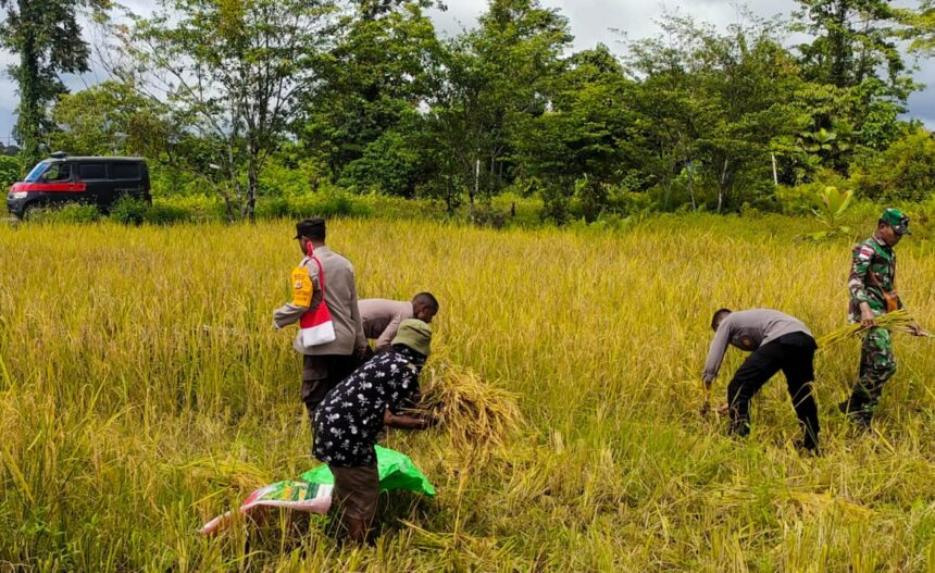 TIFFANEWS.CO.ID,- Kodim 1715/Yahukimo dan Polsek Dekai beserta aparat pemerintah, melakukan panen raya padi bersama masyarakat di Kampung Kali Brasa, Distrik Dekai, Kabupaten Yahukimo, Kamis (20/10/22).