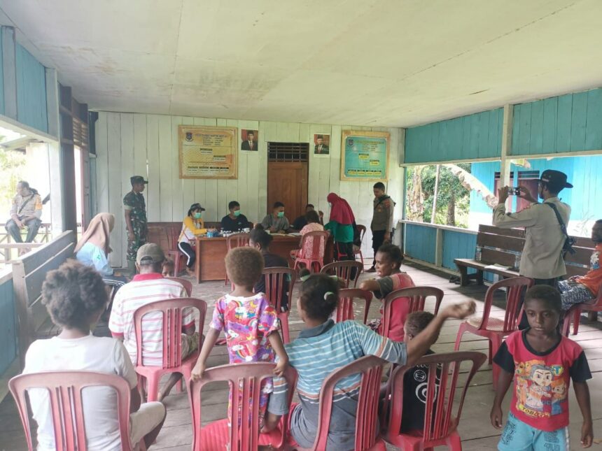 TIFFANEWS.CO.ID,- Babinsa Koramil 1712-03/Tor Atas Serda Akbar Apriansyah Rumadaul melaksanakan pendampingan petugas kesehatan Puskesmas Samanente dalam pemeriksaan kesehatan rutin kepada warga di Kampung Tenwer Distrik Tor Atas Kabupaten Sarmi. Jum’at (4/11)