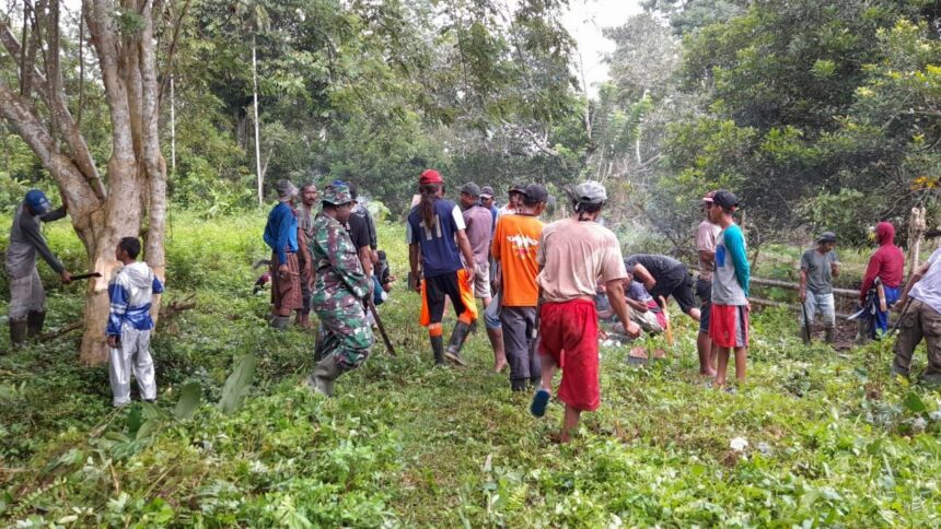 TIFFANEWS.CO.ID,- Babinsa Koramil 1712-06/Bonggo Serda Eliazer Bach dan Praka S Waicang bersama warga masyarakat kerja bakti Pembersihan jalan di Jalur 1 Barat, kampung Bebon Jaya, Distrik Bonggo, Kabupaten Sarmi, Minggu(6/11)