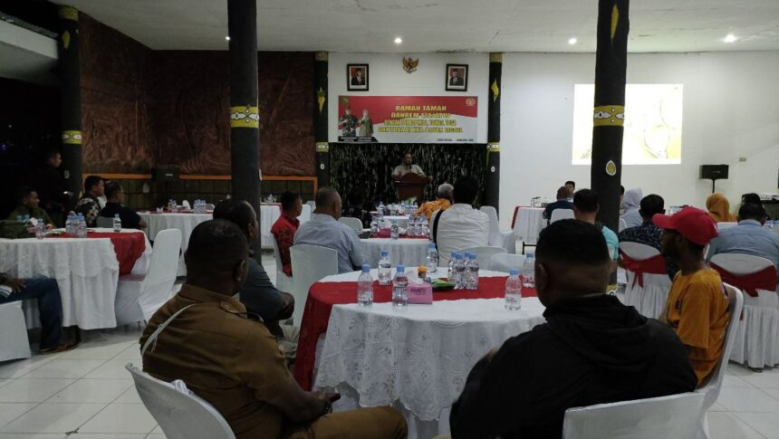 Hadir dalam ramah tamah yang berlangsung di Makodim 1711/BVD itu, Bupati Boven Digoel Hengky Yaluwo, S.Sos, Dandim 1711/BVD Letkol Czi Agustinus Ressa Sala’pa, S.T., M.I.P, Waka Polres Boven Digoel Kompol Muhammad Mukabsi, S.Sos, dan Ketua DPRD Boven Digoel Athanasius Koknak, SE.