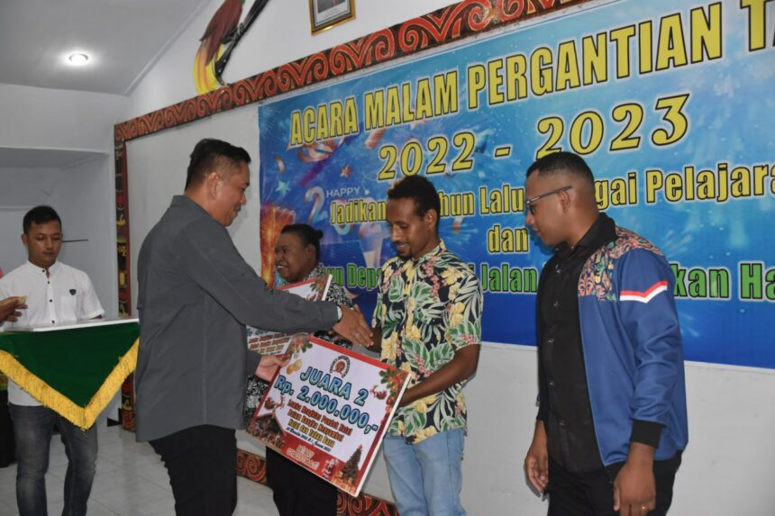 Pada kesempatan tersebut Dandim memberikan hadiah kepada para pemenang lomba menghias pondok dan pohon natal kepada masyarakat Merauke diataranya Juara 1 Bapak Yakobus Lindep dengan alamat Jln. pembangunan Kampung Baru, Juara 2 Bapak Natalis Wingmoy dengan alamat Jln. Poros Kudamatai (perempatan Cigombong) dan Juara 3 Bapak Elly dengan alamat Jln. Mangga II Kelapa Lima Kota Merauke.