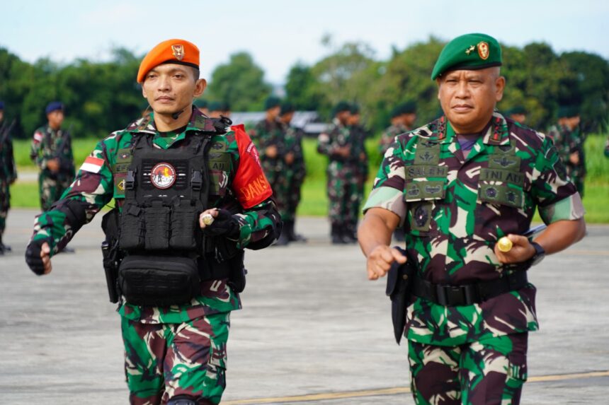 TIFFANES.CO.ID,- Pangdam XVII/Cenderawasih Mayjen TNI Muhammad Saleh Mustafa memimpin upacara penerimaan dan pelepasan Satuan Tugas (Satgas) Kopasgat, di Base Ops Lanud Silas Papare, Sentani, Jayapura, Selasa (3/1).