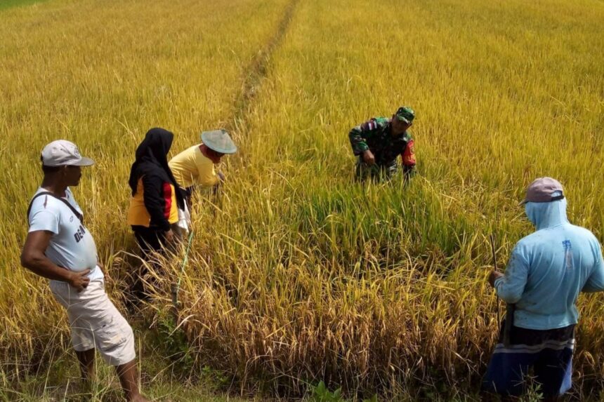 TIFFANEWS.CO.ID,- Babinsa Pos Ramil Kurik jajaran Koramil 1707-05/Merauke Sertu Muhamad Arif melaksanakan pendampingan kepada petugas PPL dalam melaksanakan pengubinan tanaman padi, di persawahan milik Bapak Mulyadi salah satu petani Kampung Candra Jaya Distrik Kurik Kabupaten Merauke.