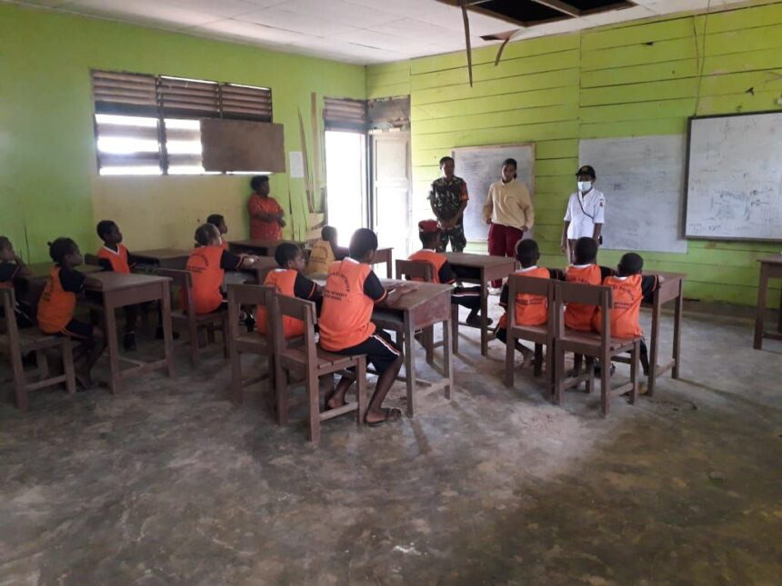 TIFFANEWS.CO.ID,- Peduli kesehatan anak di wilayah binaan, Babinsa Pos Ramil Iniyandit Koramil 1711-02/MT Serka Eri Nuhraeni melaksanakan pendampingan Bulan Imunisasi Anak Sekolah (BIAS) yang diselenggarakan oleh Puskesmas Iniyandit, di SD Inpres Autriop Kampung Autriop, Distrik Iniyandit Kabupaten Boven Digoel, Jumat (06/01).